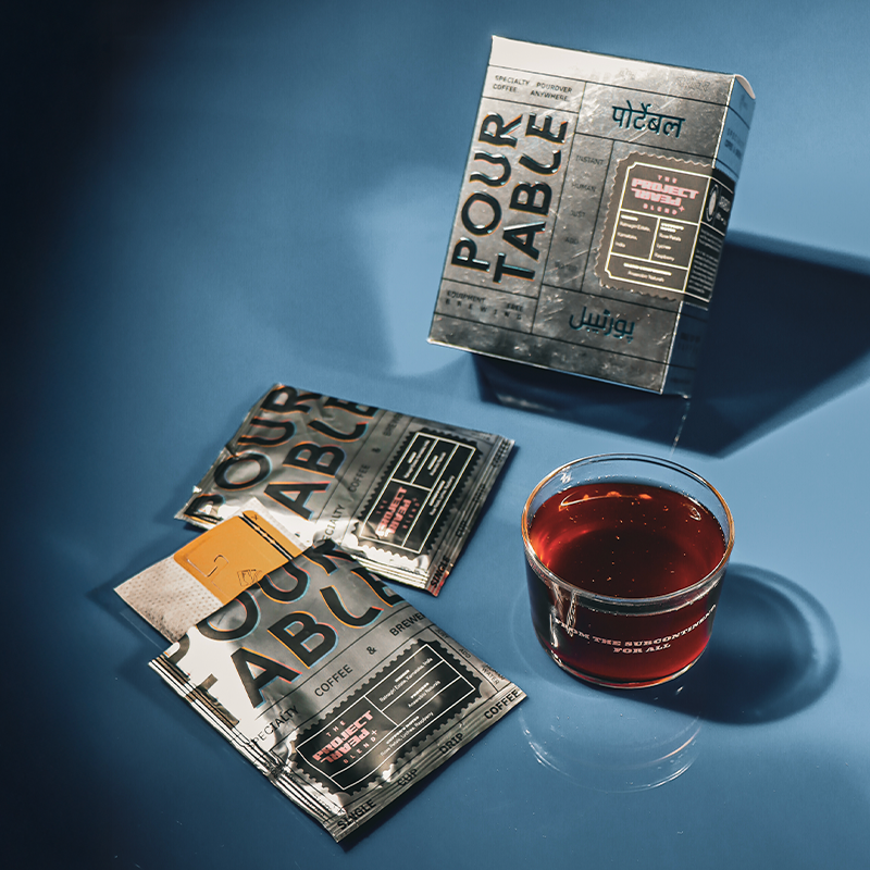 Pourtable Pourover coffee bags feature Subko’s VLGE Blend from Padera, Andhra Pradesh, offering a rich, layered profile with hazelnut praline, plum jam, and milk chocolate notes. This isn’t instant coffee, it’s instant you. Ready when and where you need it.